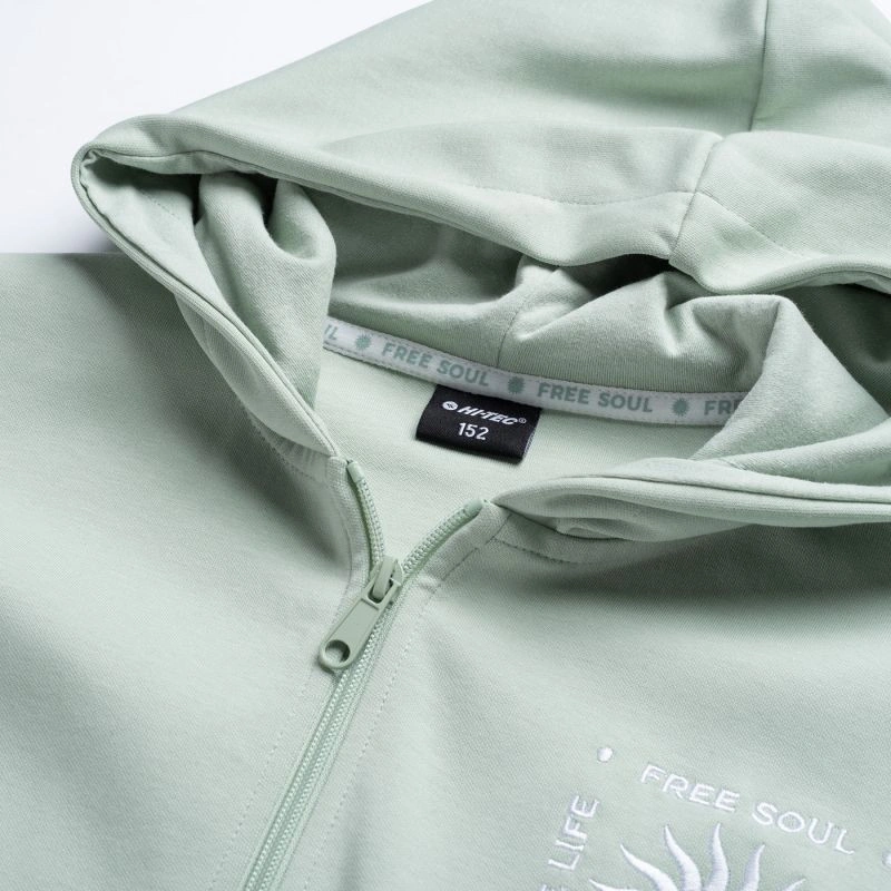 Właściwości: Damska bluza Hi-Tec. Zapinana na zamek. Wbudowany kaptur. Ściągacze przy rękawach i do