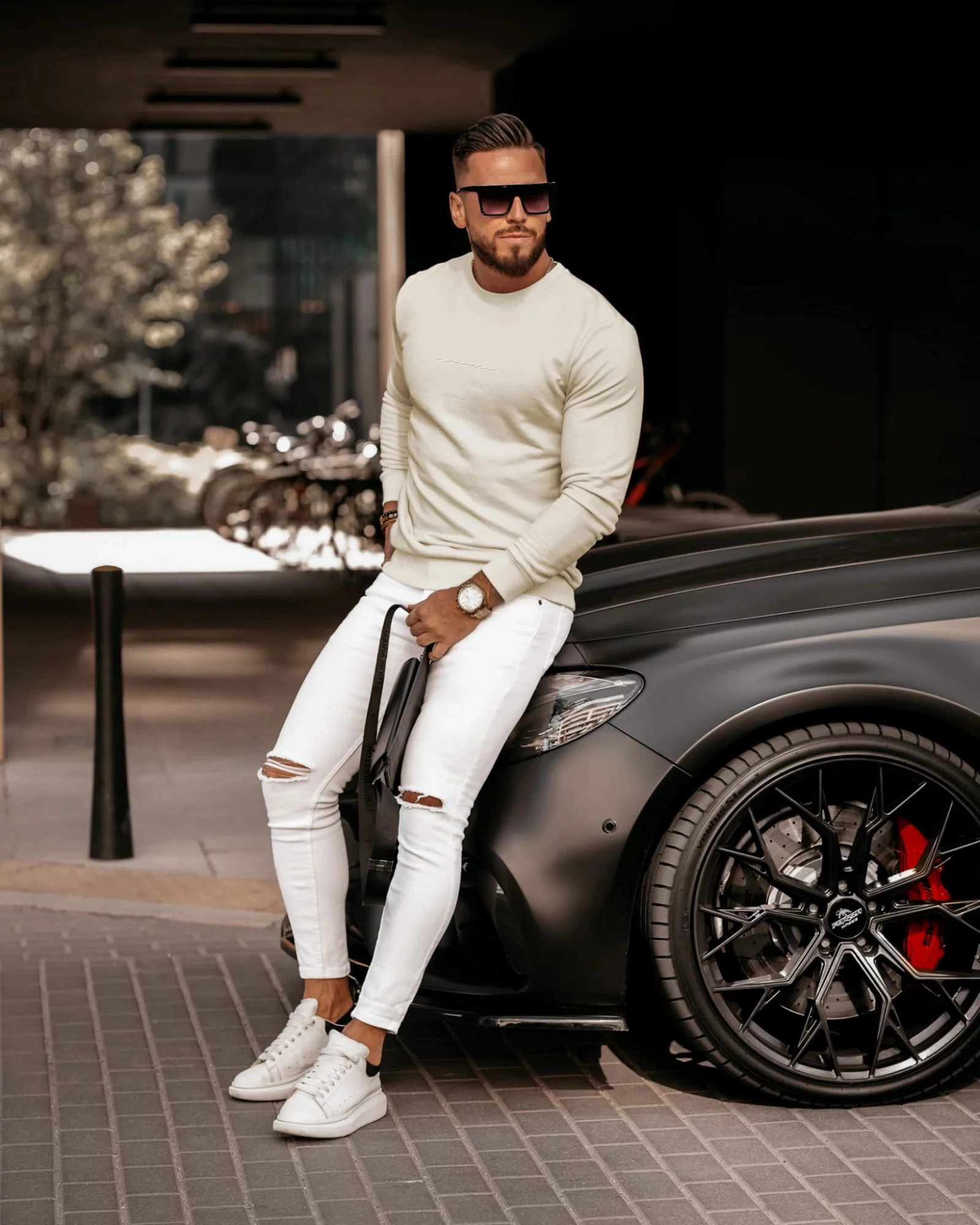 Modelka nosi rozmiar M, ma 182 cm wzrostu i waży 85 kg.