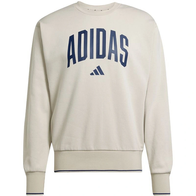 Bluza męska adidas Collegiate Sweat szara JM1732 Męska bluza adidas inspirowana akademickim stylem sprawdzi się na co dzień. Miękka konstrukcja z bawełnianej tkaniny i dodatku poliestrowych włókien. Standardowy krój. Ściągacze u dołu i przy mankietach zapobiegają utracie ciepła. Materiał: 70% bawełna, 30% poliester z recyklingu