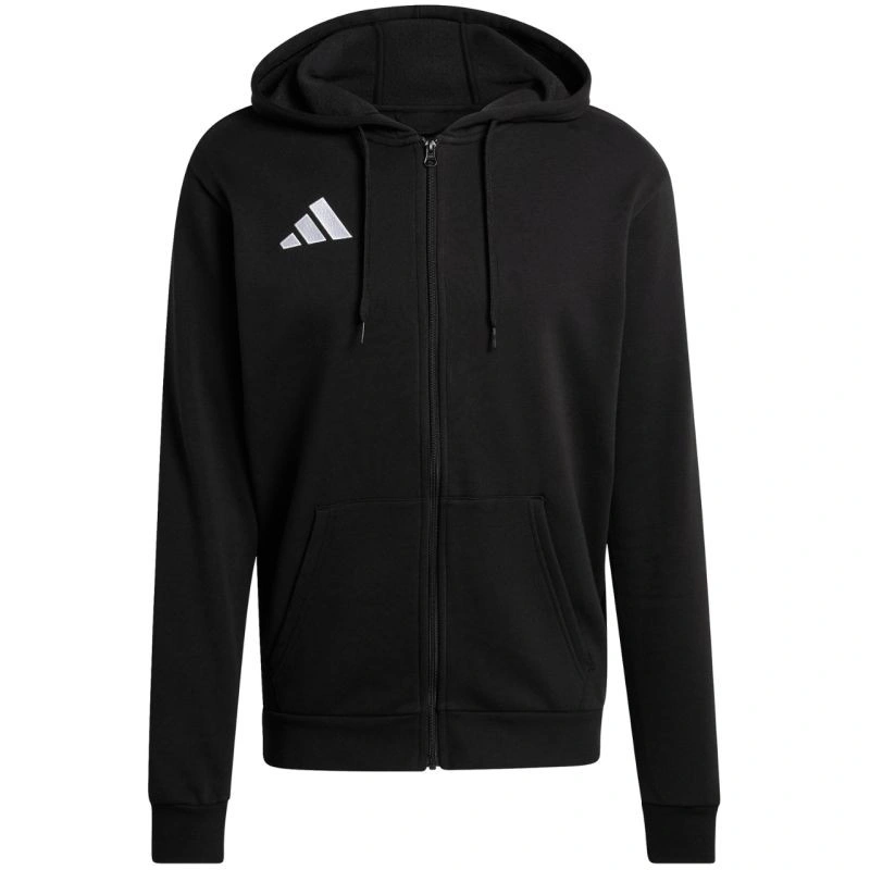 Bluza męska adidas Entrada 26 FZ Hoody czarna KF5945 Bluza dla mężczyzn adidas sprawdzi się na co dzień. Miła w dotyku, bawełniana dzianina została połączona z poliestrowymi włóknami. Polarowe podszycie. Standardowy krój. Otwarte kieszenie boczne. Kaptur regulowany za pomocą sznurka. Elastyczne ściągacze przy rękawach i na dole. Niewielkie logo. Materiał: 70% bawełna, 30% poliester z recyklingu