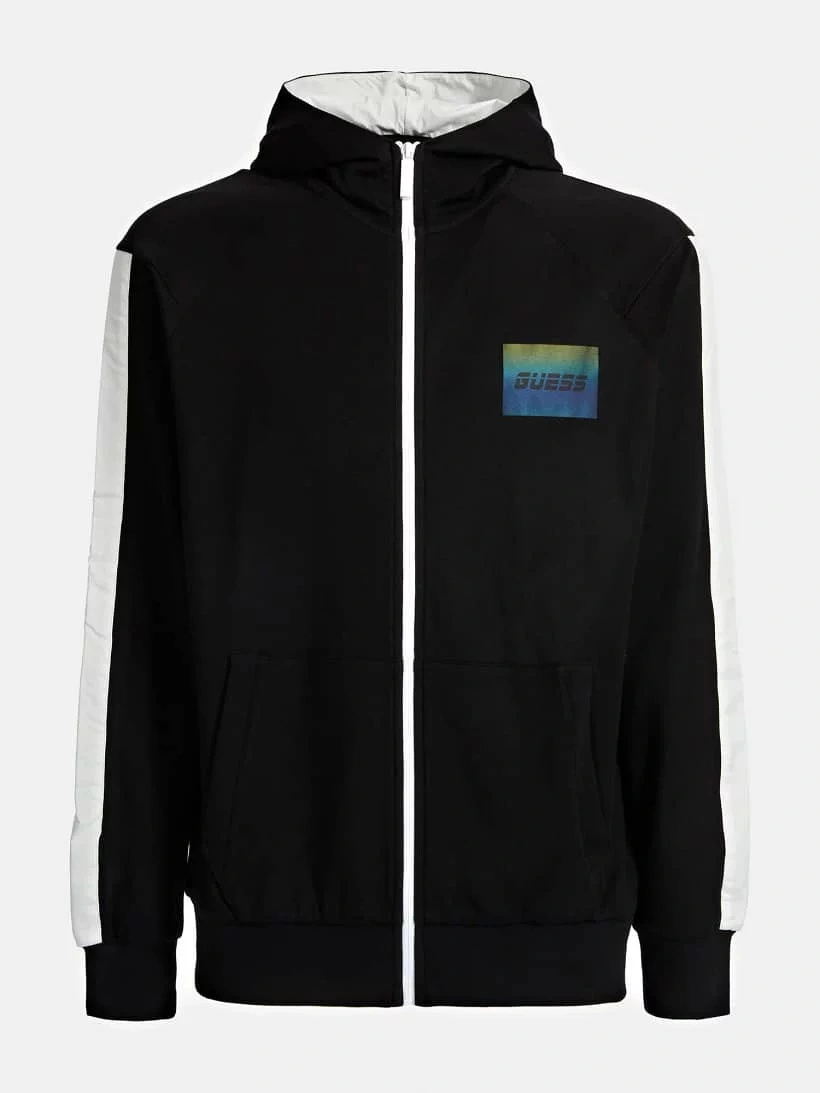 Stylowa bluza męska w kolorze czarno-białym, zapinana na zamek błyskawiczny.