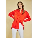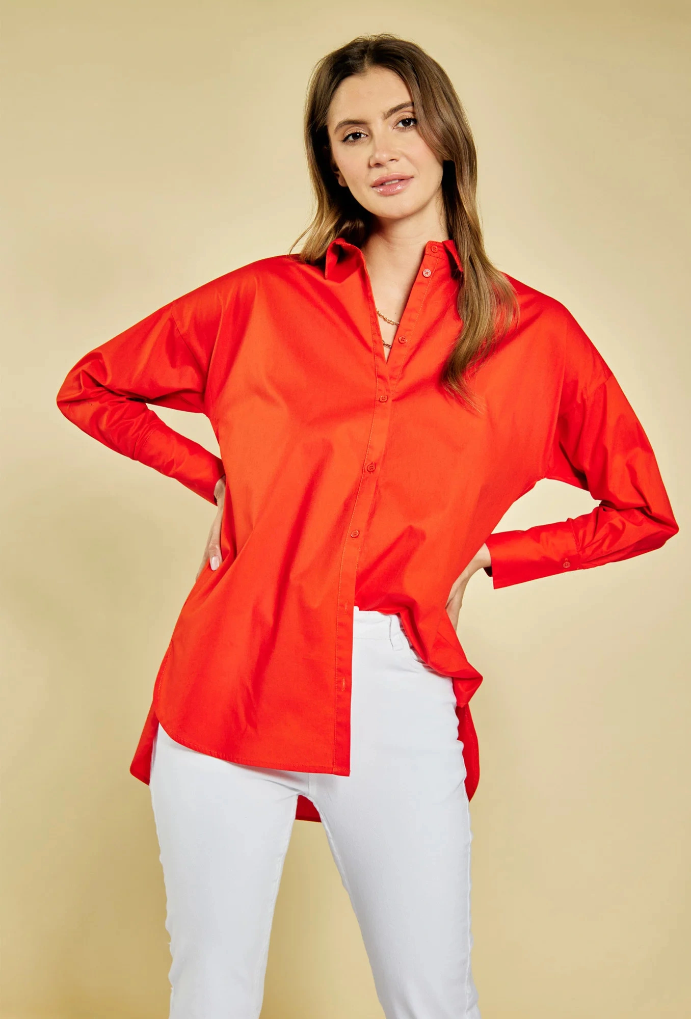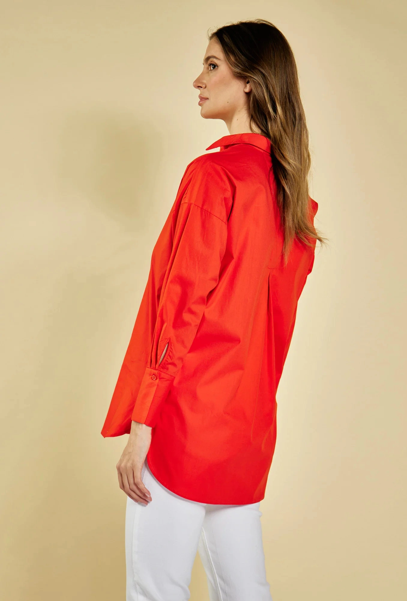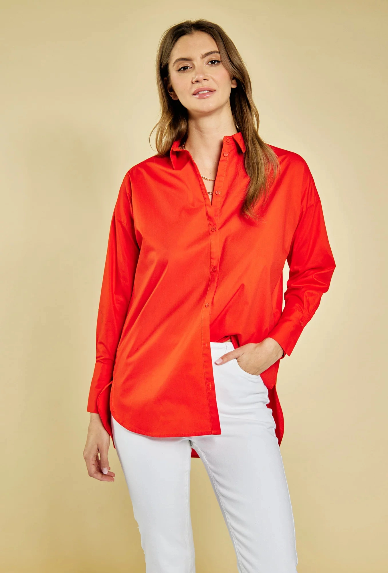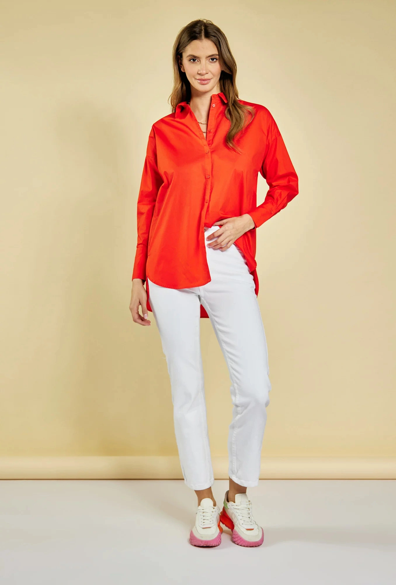 Klasyczna bawełniana koszula to z pewnością niezbędny element, którego nie powinno zabraknąć w żadnej szafie! Prosty krój koszuli doskonale komponuje się ze spodniami lub spódnicą i tworzy świetny zestaw. Koszula z kołnierzykiem, długimi rękawami zakończonymi mankietami i krótkimi rozcięciami po bokach. Model zapinany na całej długości na guziki. Modelka na zdjęciu ma 180 cm wzrostu i nosi rozmiar 36.