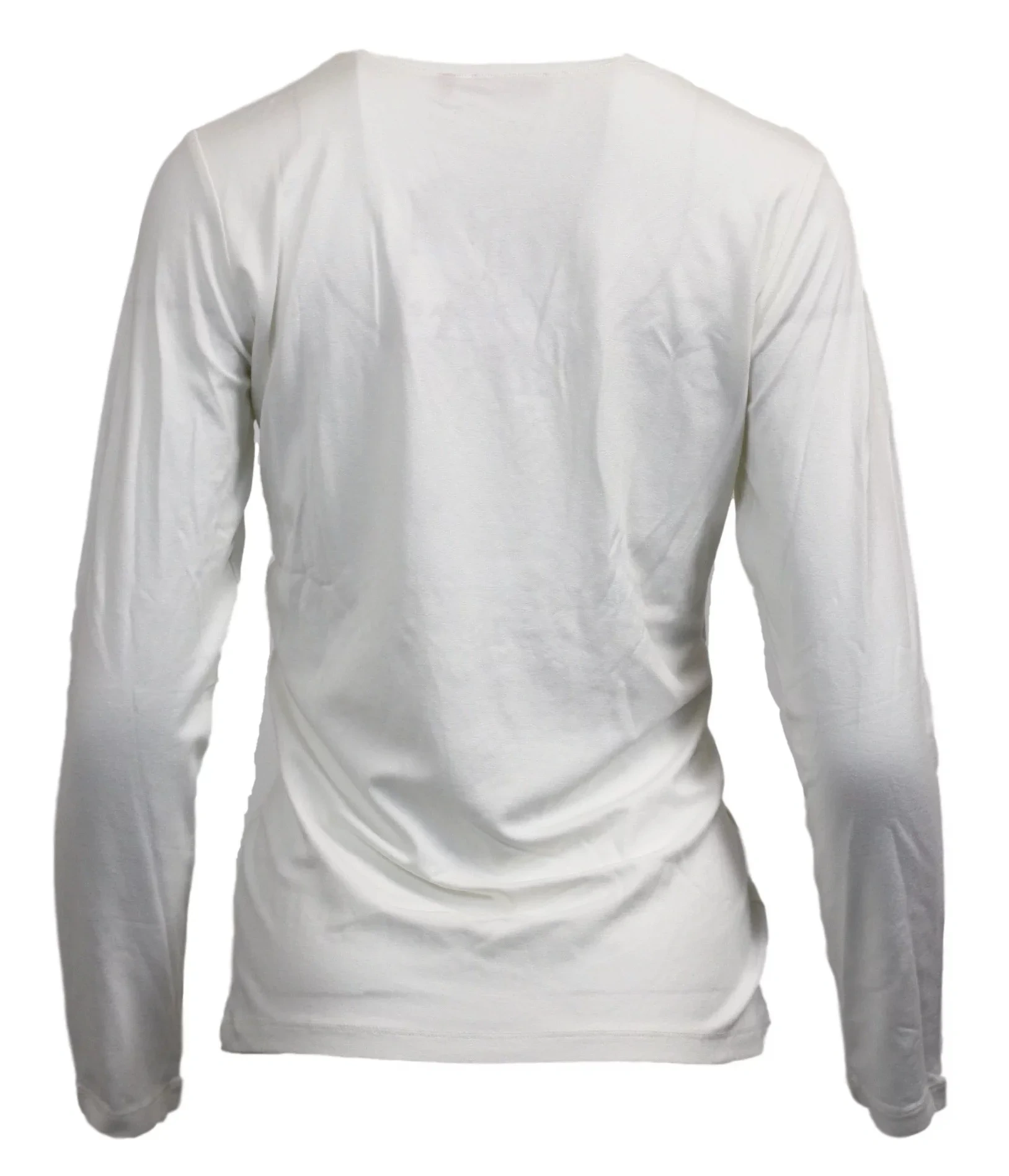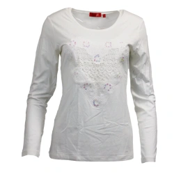 Elegancka biała koszula Linaka z dekoltem V ozdobionym elementami Svarowskiego. Przód jest podwójnie