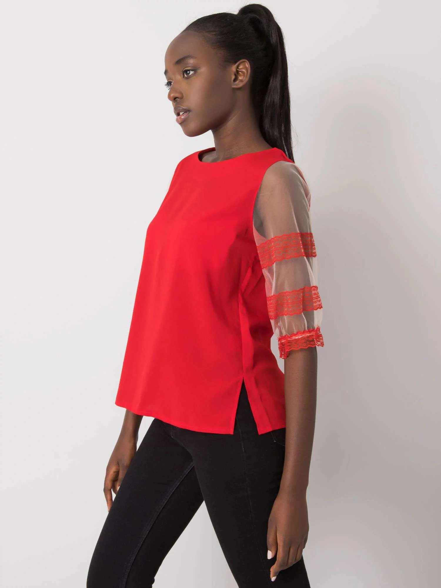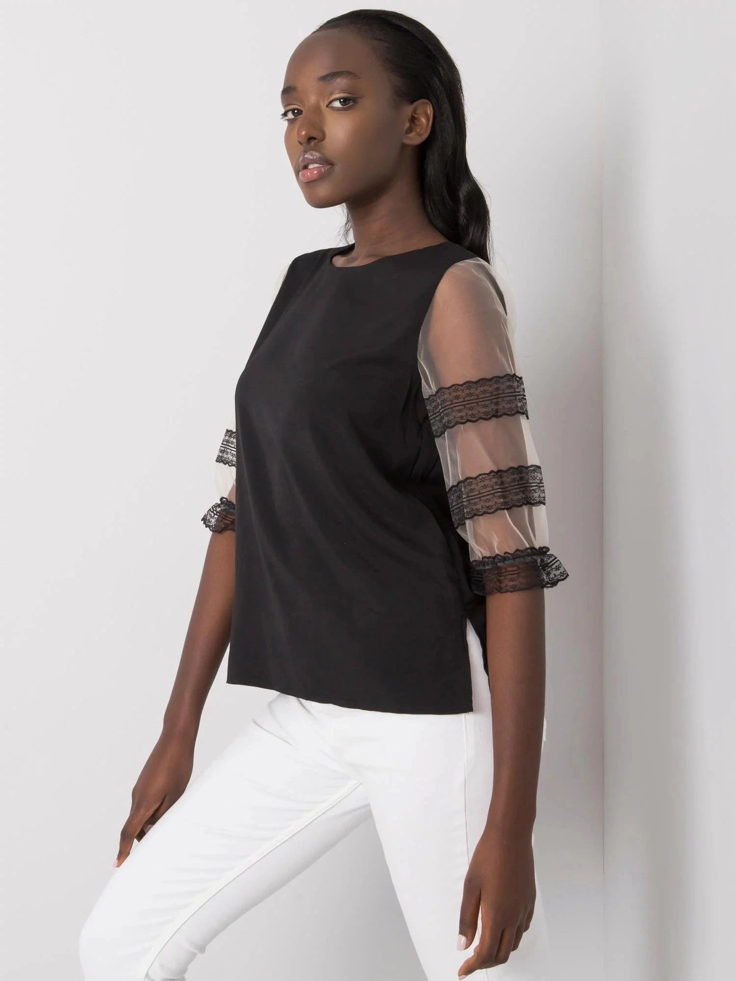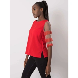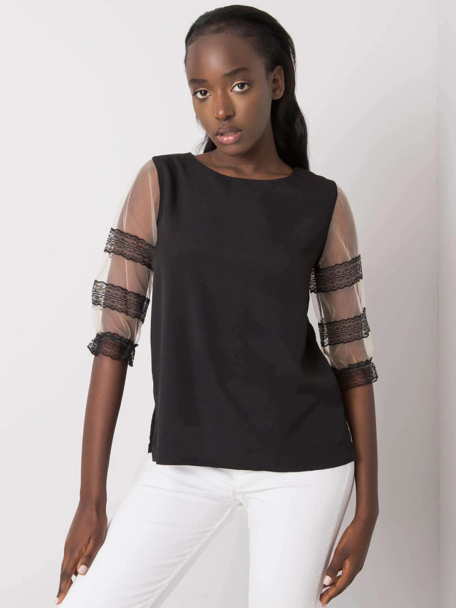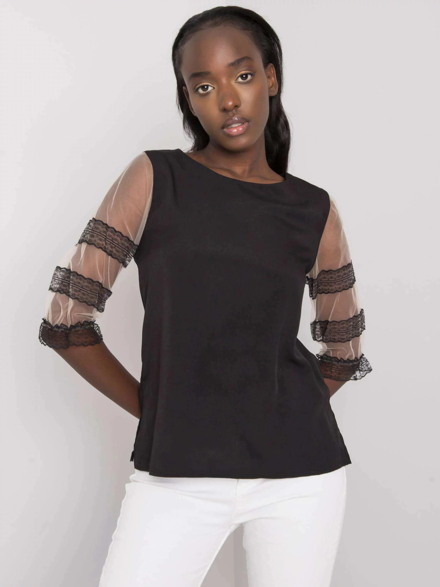 Wymiary bluzki w rozmiarze 36 mierzone na płasko: szerokość pod pachami - 46 cm, długość całkowita - 57 cm, długość rękawa - 37 cm