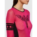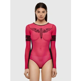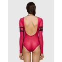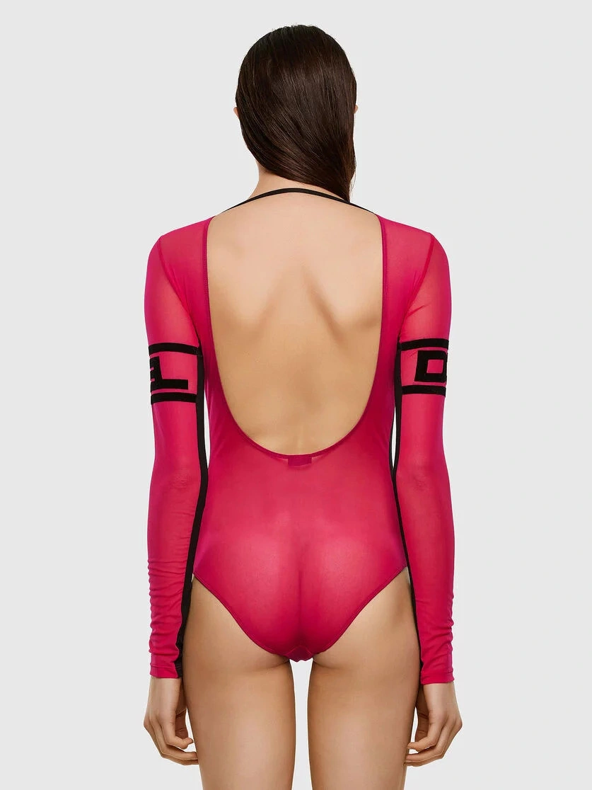 Wykonane z elastycznej siateczki body posiada duże logo Diesel na piersi. Body ma długie rękawy i głęboki dekolt z tyłu.