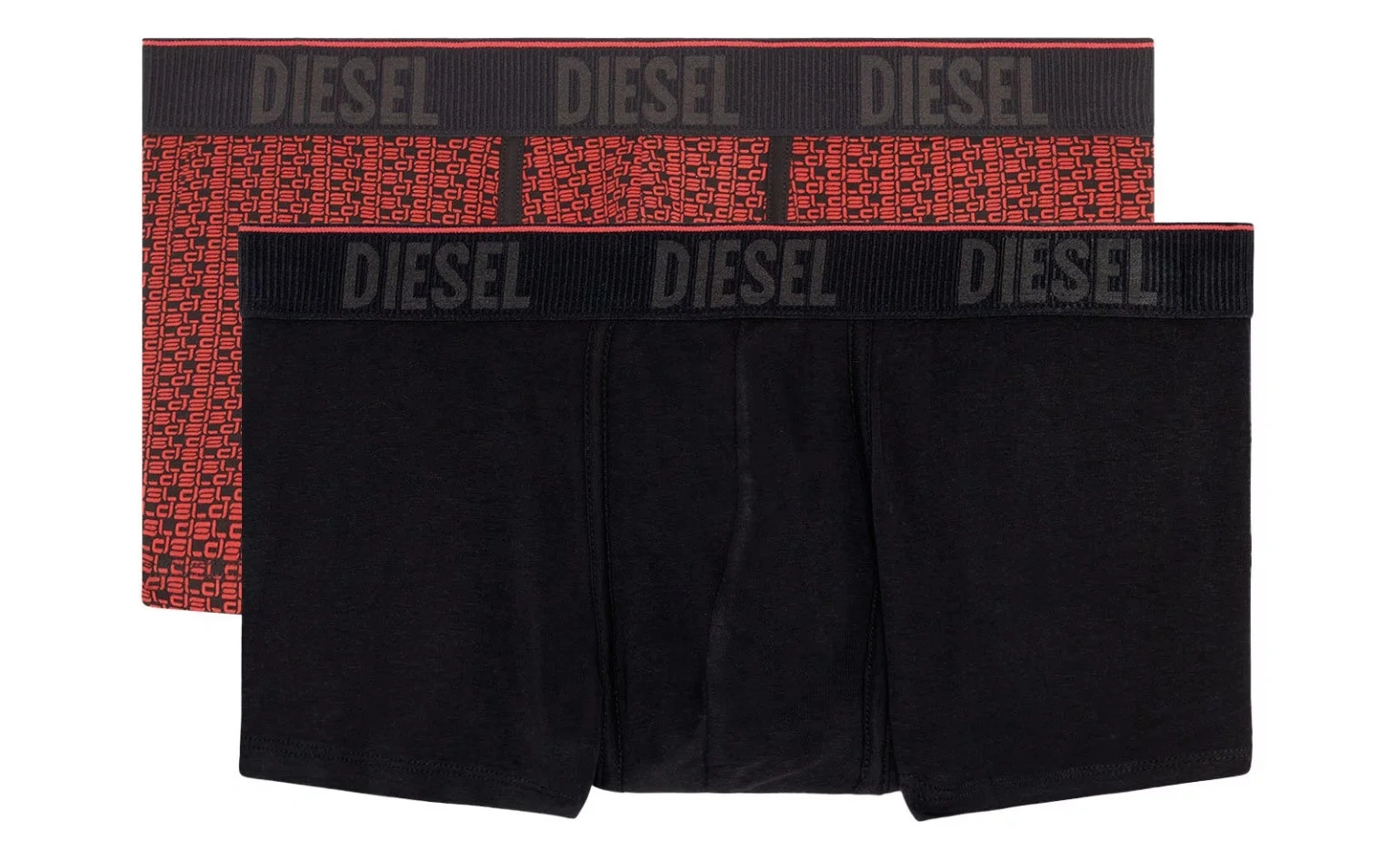 Dwupak męskich bokserek wykonanych z elastycznej bawełny. Jedna para jest monochromatyczna, a druga ma pełnokolorową grafikę z logo. Wykończone delikatnym paskiem z logo.