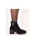 Stylové a ženské dámské botky vyrobené z měkké ekologické zamszové kůže, které skvěle spojují eleganci s pohodlím. Ideální na chladnější dny, díky zateplení poskytují pohodlí a teplo během nošení. Model s výškou nad kotníkem a 11,5 cm vysokou špičkou vypadá velmi elegantně. Stabilní podpatek typu sloupek o výšce 7 cm jemně zeštíhluje nohy, zároveň zajišťující pohodlí po celý den. Botky mají zip pro snadné obouvání a ozdobné spony, které dodávají celku moderní, stylový charakter. Kulatá špička a textilní vložka zaručují pohodlí každým krokem. Ideální volba pro ženy, které oceňují spojení elegance, pohodlí a módních detailů, skvělé pro každodenní a městské stylizace.