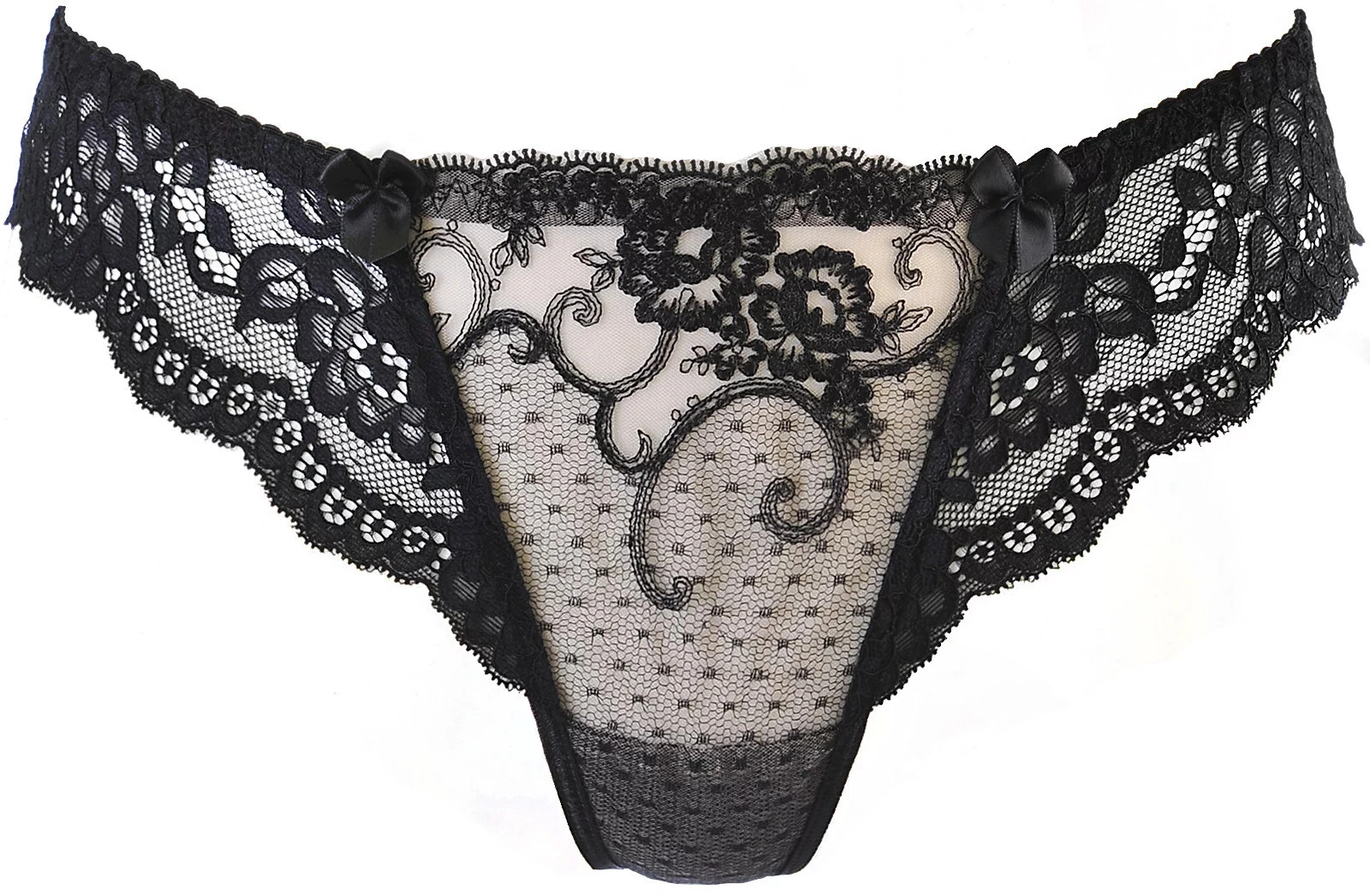 Czarne stringi z koronkowym haftem dadzą poczucie uwodzicielskości. Połączenie ekstrawaganckiej koronki i klasycznego kwiatowego haftu to zestaw odpowiedni na każdą okazję, dodatkowo tył majtek wykończony jest ładną i delikatną koronką. Mieszanka niezwykłych tkanin i faktur specjalnie dla Ciebie!