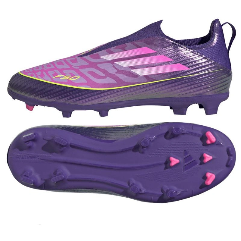 Buty piłkarskie F50 League Laceless do gry na naturalnych powierzchniach pozwalają młodym piłkarzom osiągać prędkość, która zmienia przebieg gry. Mają cholewkę Fiberskin wykonaną z materiału o specjalnej, miękkiej w dotyku konstrukcji, która zapewnia wsparcie za sprawą strategicznie rozmieszczonych linii 3D. Nadruk Sprintgrid 2D zapewnia osłonę przeciwbłotną, wizualnie naśladując detale modeli z najwyższej półki cenowej. Założysz je błyskawicznie dzięki taśmie na pięcie, która ułatwia wsuwanie stopy do butów bez sznurowadeł. Kołnierz wykonany z najlepszych materiałów gwarantuje komfort i blokuje stopę, zapewniając bezpieczne dopasowanie podczas intensywnej gry. Niezależnie od tego czy biegniesz sprintem, czy wykonujesz szybkie zwroty, te buty nadążą za każdym Twoim ruchem. adidas zaprojektował ten model z myślą o kolejnym pokoleniu gwiazd piłki nożnej.