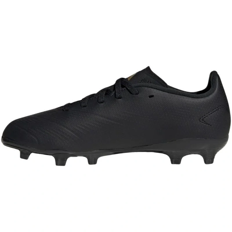 Buty piłkarskie dla dzieci adidas Predator League FG IF6353 Półamatorskie buty piłkarskie adidas Predator przeznaczone są dla chłopców, którzy preferują rozgrywki na twardej, naturalnej murawie. Predator w najnowszej odsłonie pochodzi z kolekcji Darkspark Pack. Syntetyczna cholewka z technologią Hybridfeel została pokryta wypukłą teksturą i wyposażona w przyczepne nakładki Strikescale na wewnętrznym boku stopy dla lepszego przejęcia kontroli. Delikatnie asymetryczne sznurowanie. Podeszwa z lanymi kołkami.