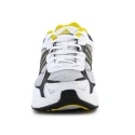 Cholewka buta, inspirowana stylem retro, wykonana jest z warstwowej mieszanki siateczki i skóry syntetycznej, wykończona w kolorze białym i szarym, podkreślona akcentami koloru żółtego.