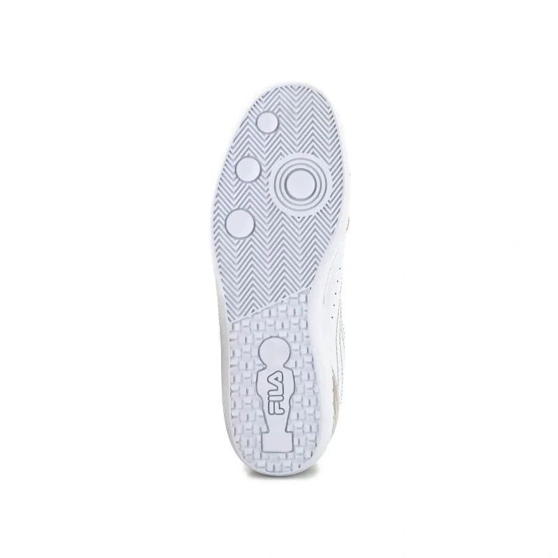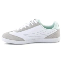 Właściwości: Buty damskie Fila. Wykonane ze skóry powlekanej w modnej kolorystyce bieli, sza