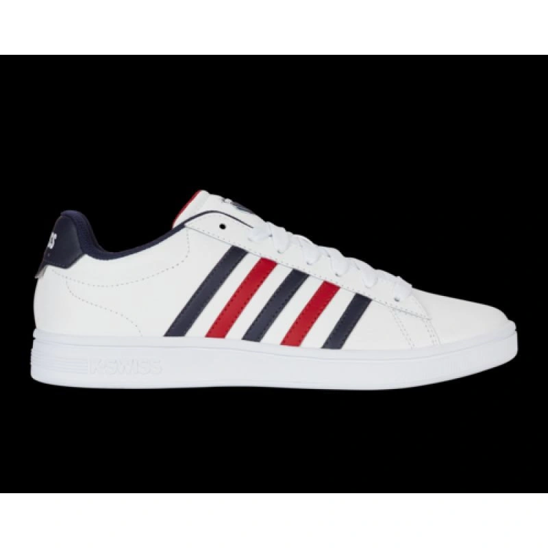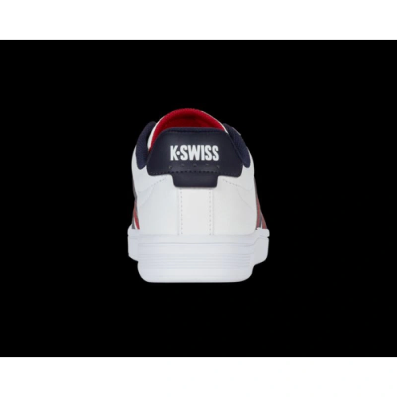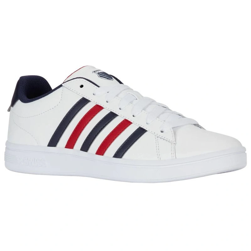 Logo K-Swiss: subtelnie umieszczone na języku, pięcie i bocznym panelu, podkreśla autentyczność i prestiż marki.