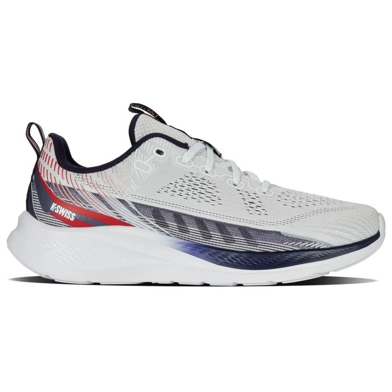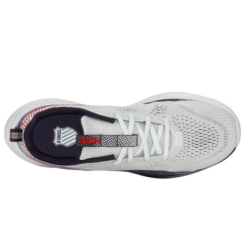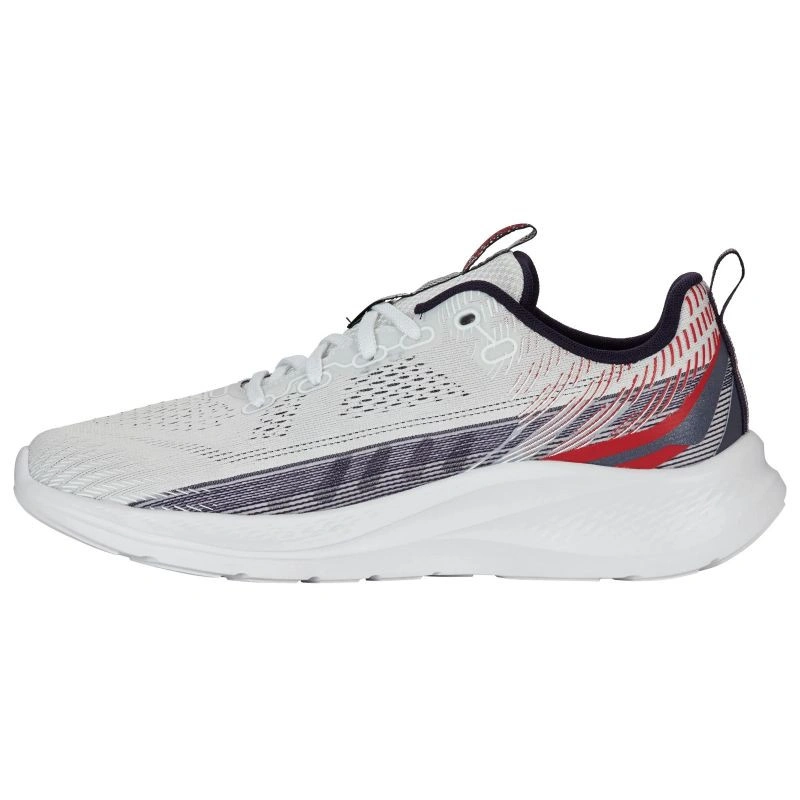 Nowoczesny design: Klasyczna biała kolorystyka z kontrastowymi akcentami w odcieniach granatu i czerwieni nadaje butom unikalnego charakteru.