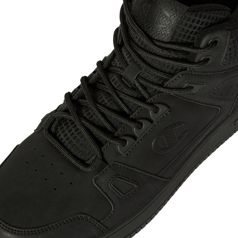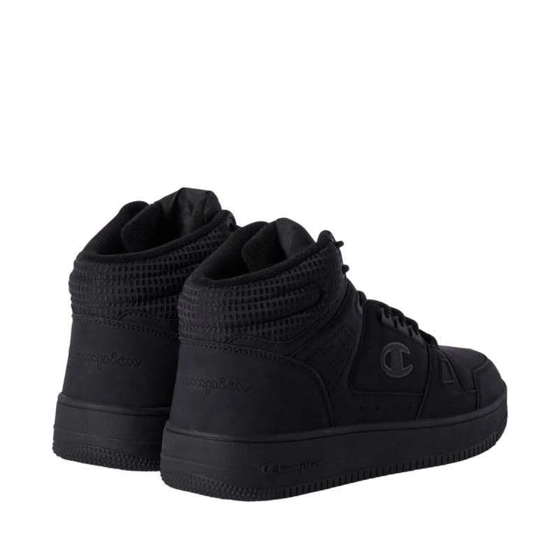 Buty męskie Champion RD18 Mid Comb czarne S22478 KK001 Buty sportowe Champion to sprawdzony model na co dzień. Wydłużona cholewka z wysokogatunkowego tworzywa syntetycznego. Podwójne przeszycia. Perforacje umieszczone w kilku miejscach konstrukcji. Tekstylna struktura zapiętka i języka. Standardowe sznurowanie. Tekstylne wnętrze. Miękko wyściełany język oraz zapiętek. Gumowa podeszwa zewnętrzna ze specjalnie uformowanym bieżnikiem.
