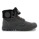Palladium Baggy posiadają wysoką, wywiniętą cholewkę z trwałego materiału tekstylnego i okrągły wzmocniony przód