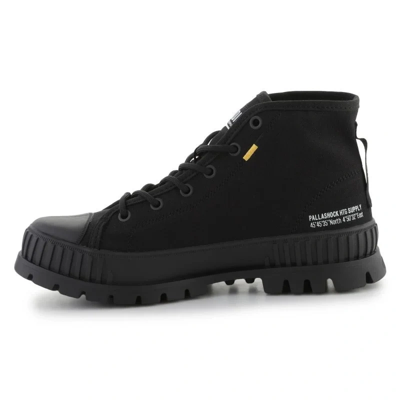 Pallashock Supply to miejski styl z lekką cholewką wykonaną z miękkiego organicznego płótna i charakterystyczną, amortyzującą, masywną podeszwą zewnętrzną wykonaną z gumy pochodzącej z recyklingu.