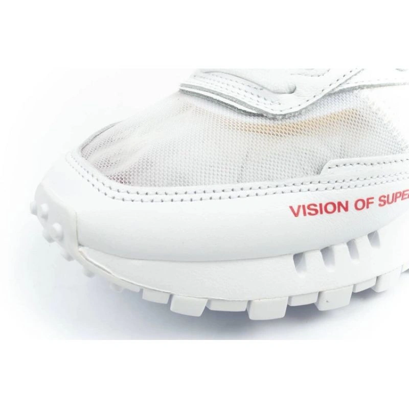 - Górna część cholewki została wykonana z przeźroczystej siatki, przez którą widać stopę.