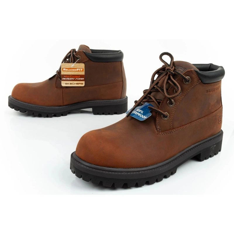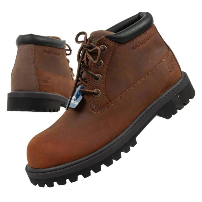 Właściwości: Modne męskie obuwie marki Skechers. Wodoodporna cholewka wykonana z najwyższej jakości