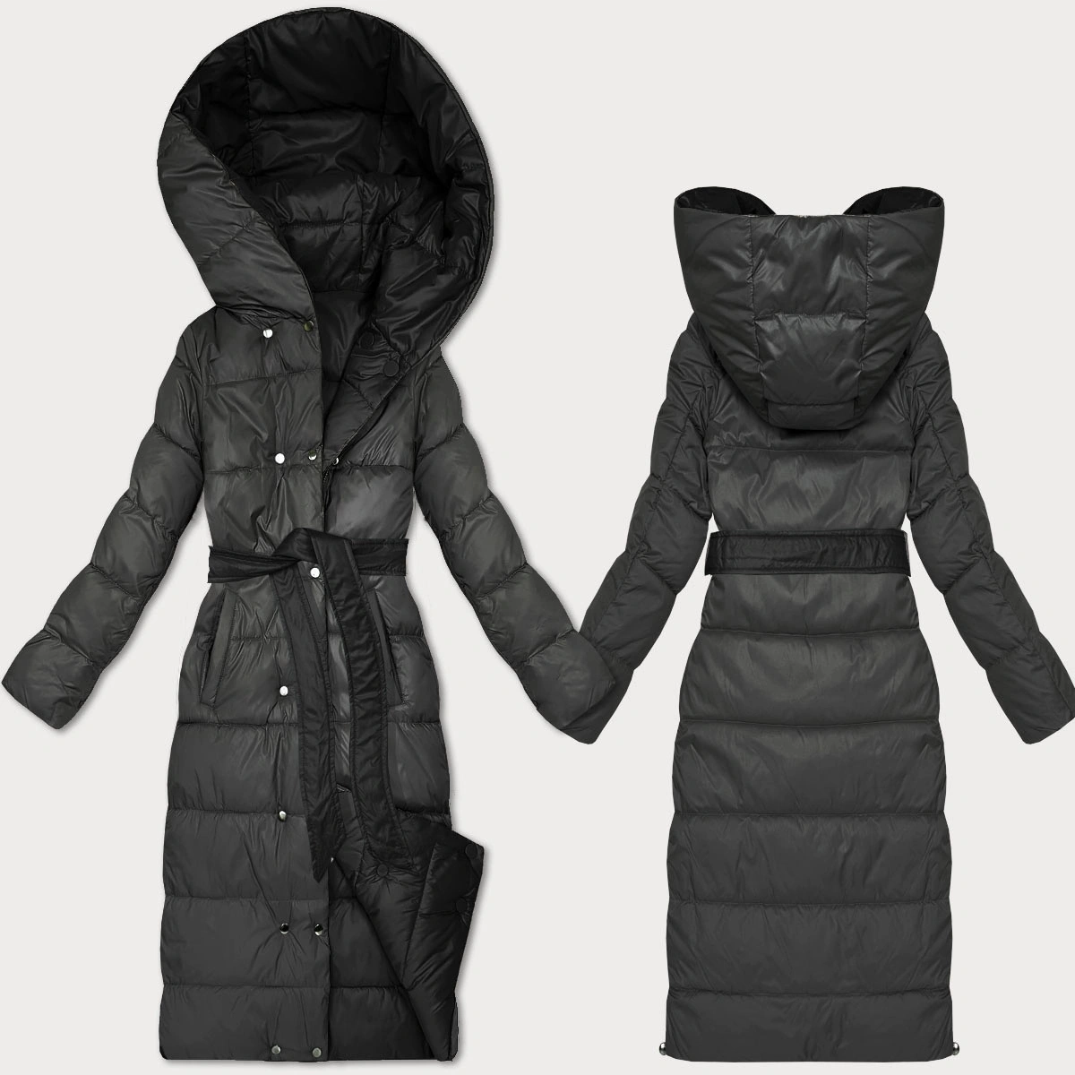 Bunda je prošívaná, je zateplená syntetickou péřovou výplní, má dvě kapsy a zapíná se dvousměrným zipem a panelem s patentkami. Model má kapuci, kterou není možné odepnout. Ve spodní části modelu jsou na bocích rozparky se zapínáním na zip. Bunda má délku ke kolenům.