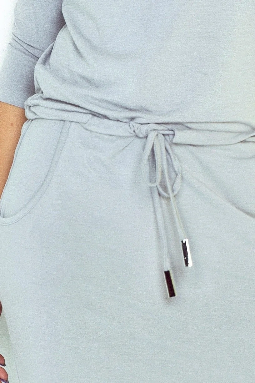 Damska letnia i sportowa sukienka w nowoczesnym stylu, wykonana z elastycznego materiału w stylu batwing. Sukienka jest wyposażona w kieszenie w przedniej części, sukienkę można zawiązać w talii dzięki sznurkowi umieszczonemu w tunelu. Nowoczesna i bardzo wygodna sukienka, którą można nosić w wolnym czasie, w domu lub na spacerze, ale także na wycieczkę do miasta.nowoczesny i swobodny krój, przyjemny materiał i możliwość aranżacji sukienki (podcięcie itp.).), dzięki sznurkowi ściągającemu.materiał, z którego wykonano sukienkę jest przyjemny w dotyku.wysokiej jakości sukienka damska.designerska odzież damska wyprodukowana dla UE.