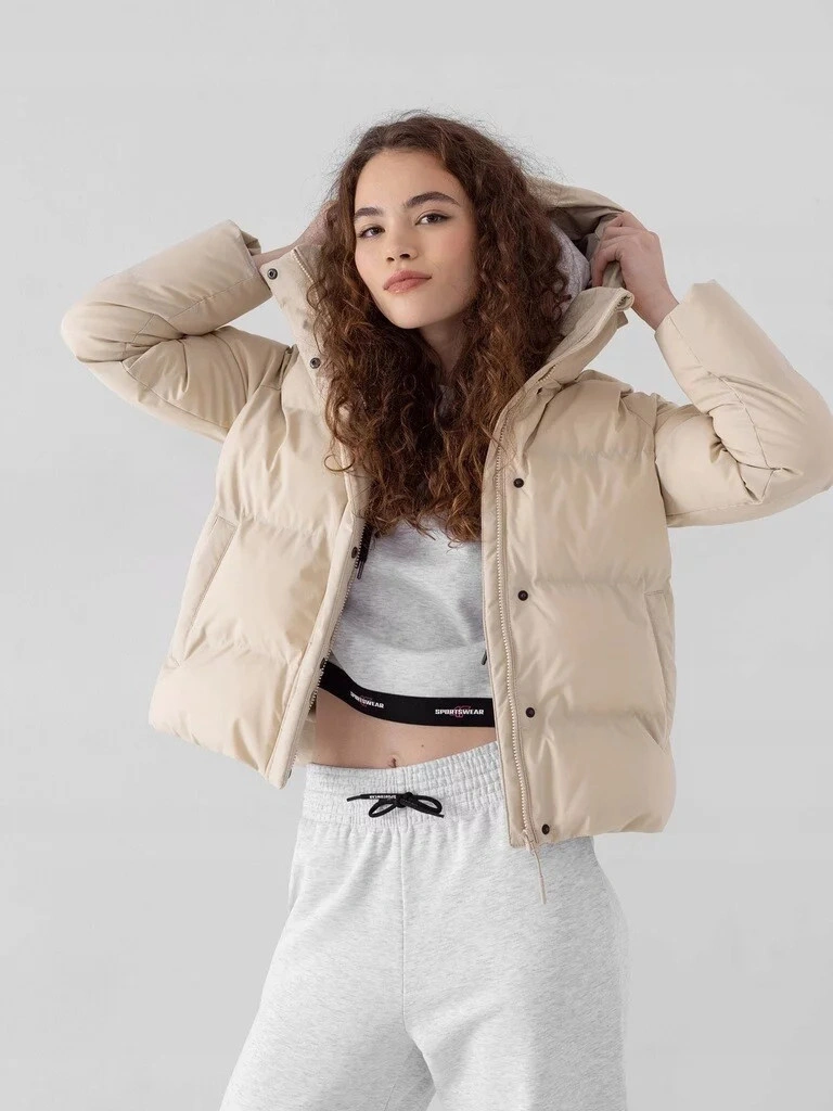Dámská péřová prošívaná bunda. Spodní část na stahování šňůrkou.