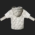 Bunda má volný střih, je lehce zateplená vrstvou syntetické péřové výplně, má dvě kapsy a zapíná se asymetrickým dvousměrným zipem. Model má délku k bokům.