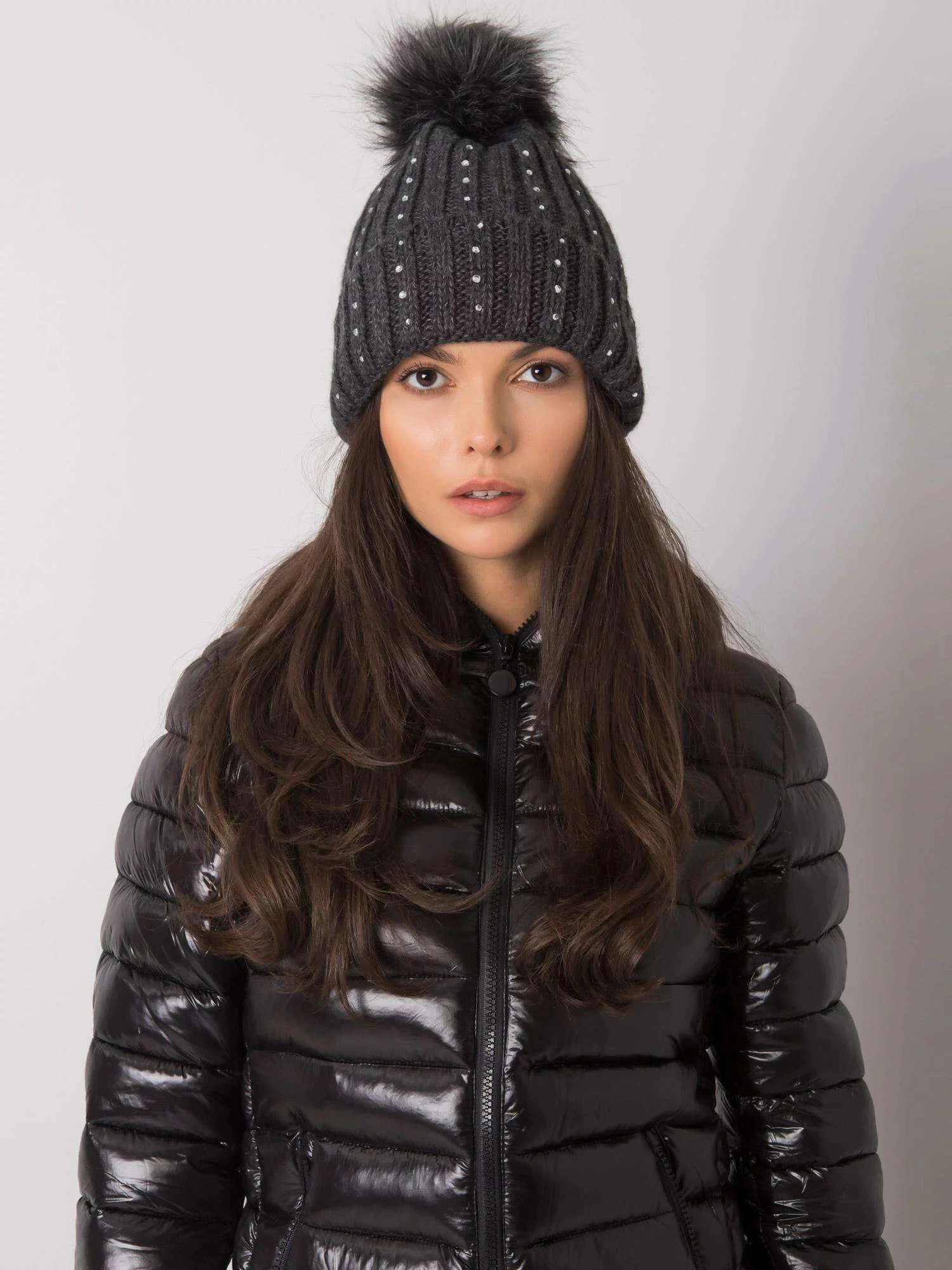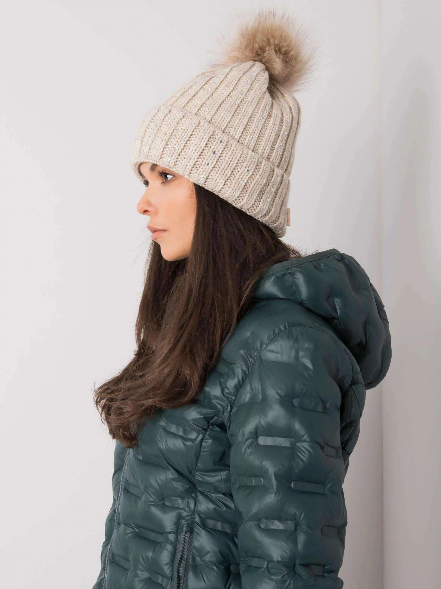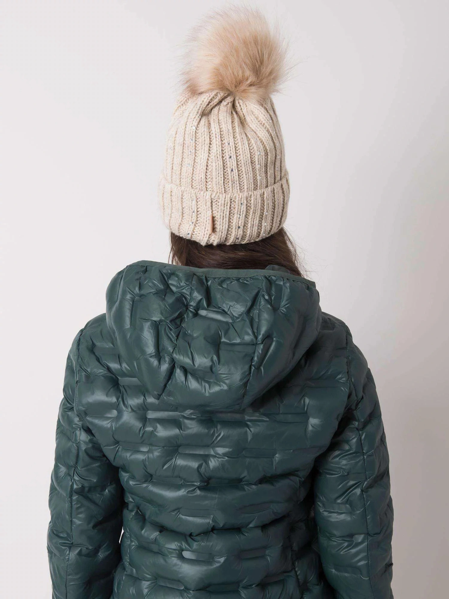 Beżowa ocieplana czapka z aplikacjami