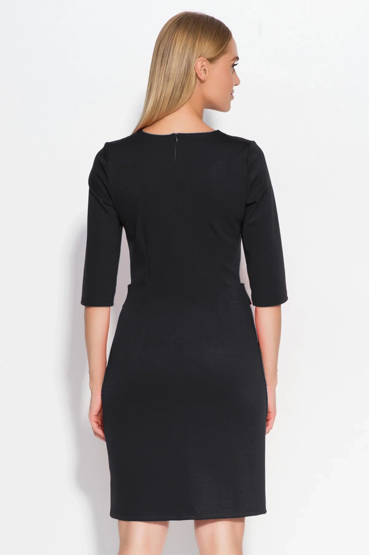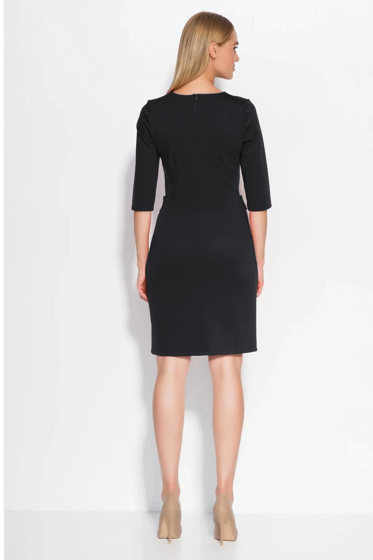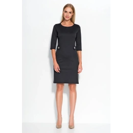 Damskasukienka z rękawami zdobiona klapami w talii, w komplecie z guzikami, materiał sukienki jest bardzo wysokiej jakości, jego skład można znaleźć poniżej.