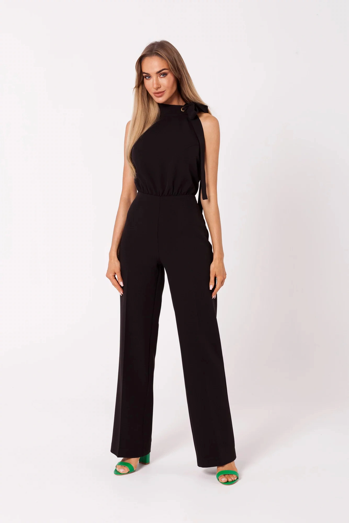 Tento lichotivý overal má výstřih na ramínka a detailní zavazování.