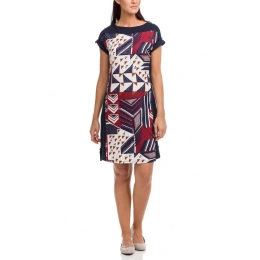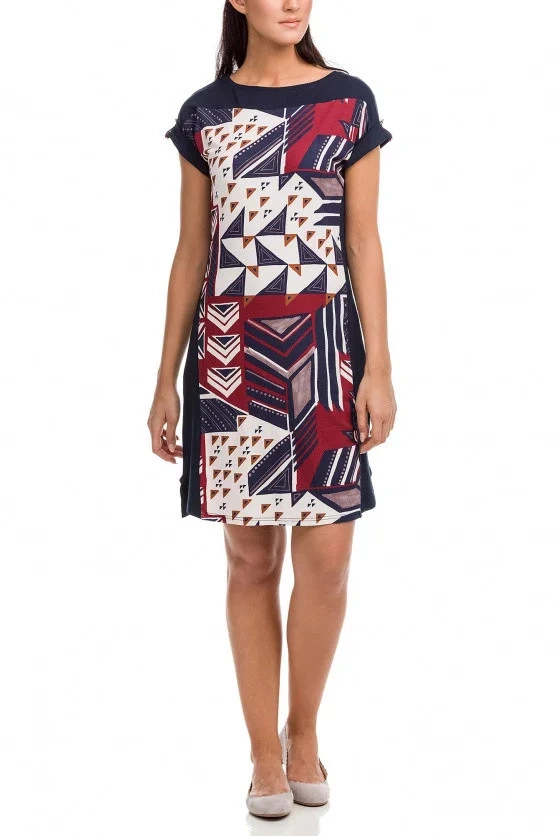 Damska letnia sukienka z nowoczesnym nadrukiem jest elegancka i przewiewna. Wszystko, czego kobieta potrzebuje w gorące letnie dni. Wiskoza, z której są wykonane, jest idealnym materiałem na lato dzięki swojej lekkości i efektowi chłodzenia.długość 1,00 m