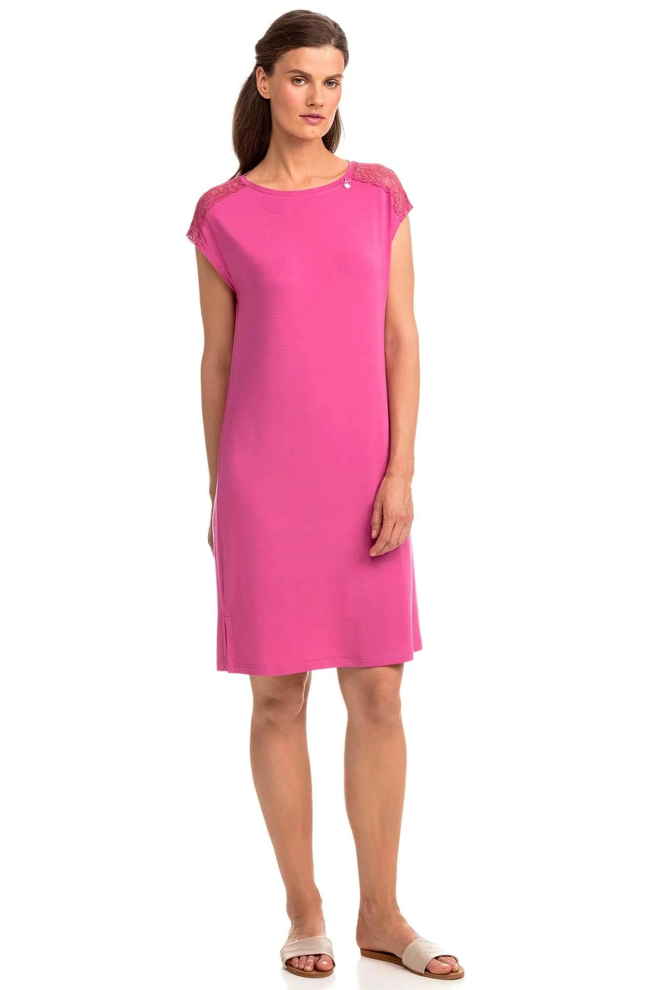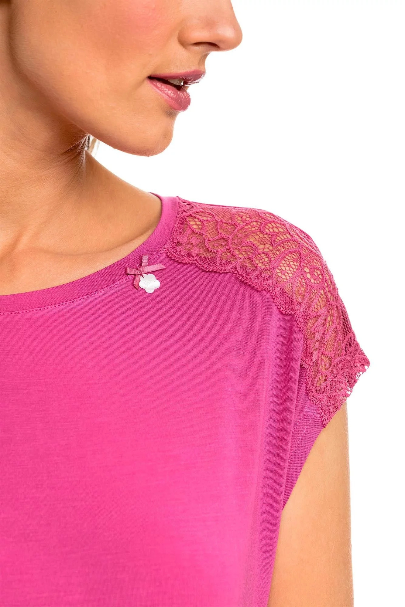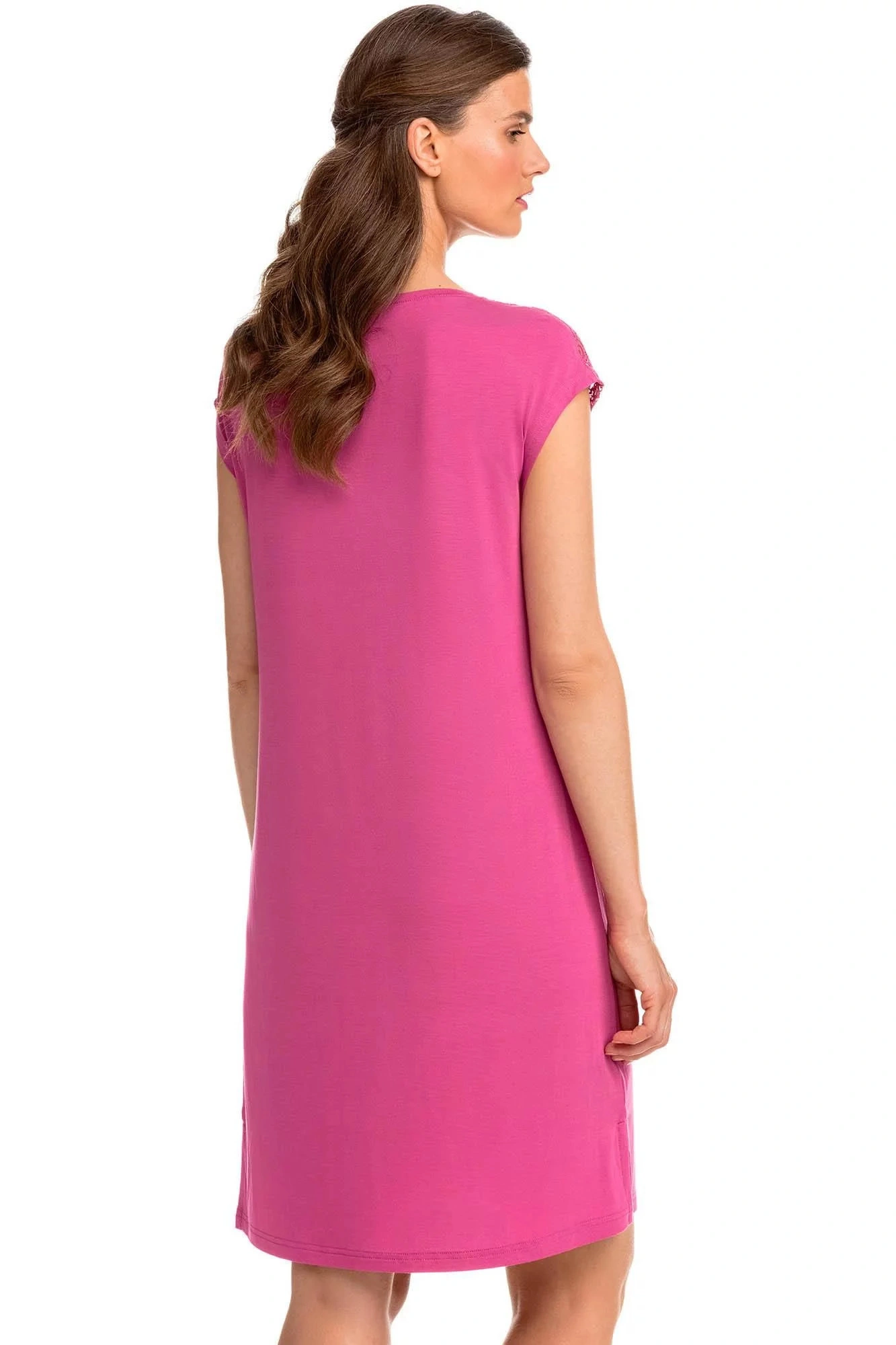 Damska koszula nocna, w której poczujesz się wyjątkowo i wygodnie. Koszula nocna jest ozdobiona luksusową koronką na ramionach. Wykonana jest z wysokiej jakości mikromodalu z domieszką elastanu. Naturalny mikromodal zapewnia wyjątkową miękkość i wygodę, jest oddychający, nie kurczy się w praniu, dobrze wchłania pot i szybko schnie, a elastan nadaje odzieży niezbędną elastyczność.
