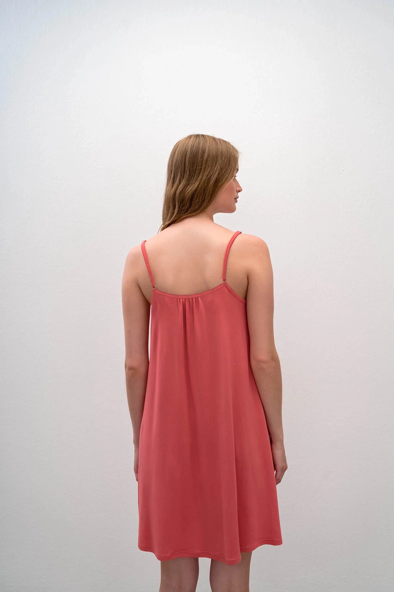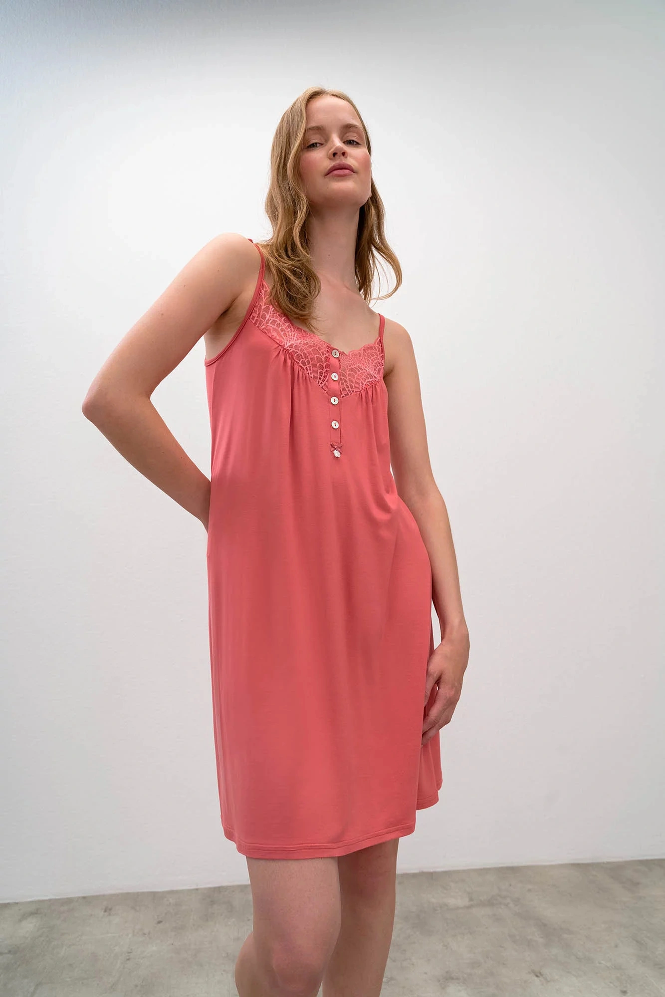 Damska koszulka nocna bez ramiączek, koronka z przodu. Skład materiału: 93% mikromodal, 7% elastan
