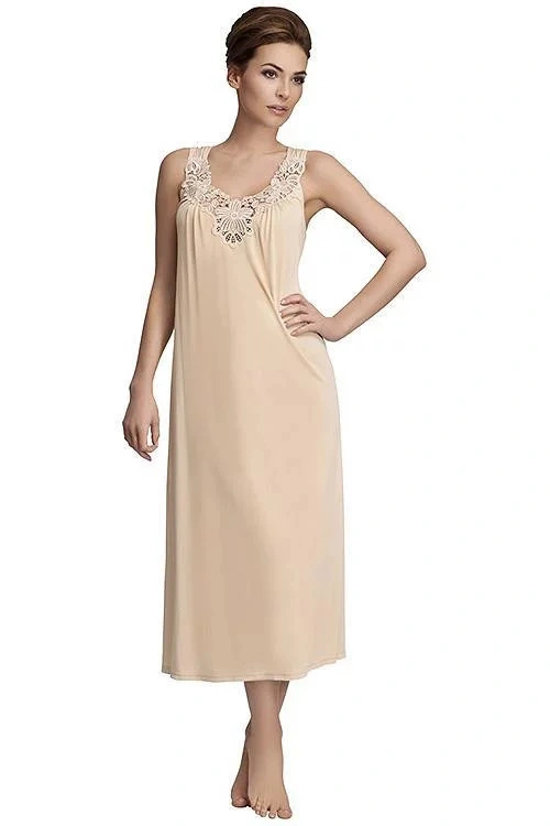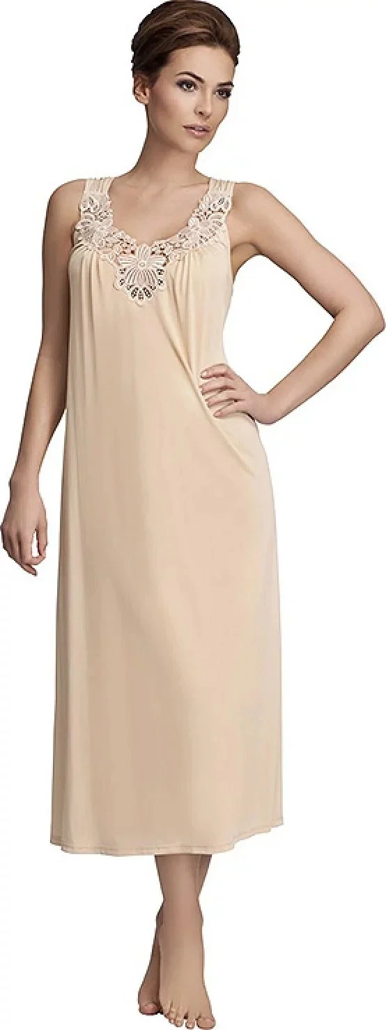 Klasyka w Twojej szafie - damska koszula nocna na szerokich ramiączkach.Koszulka wykonana jest z tkaniny wiskozowej Vistex. Elegancki tłoczony haft przy dekolcie dodaje modelowi delikatności i zmysłowości.Możesz stworzyć zestaw z pięknym szlafrokiem 4115.