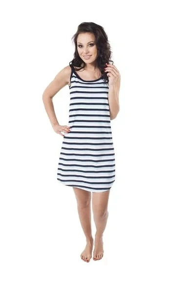 Damska biało-niebieska koszula nocna bez rękawów w pionowe paski od Rebelle.na koszuli nocnej znajdu