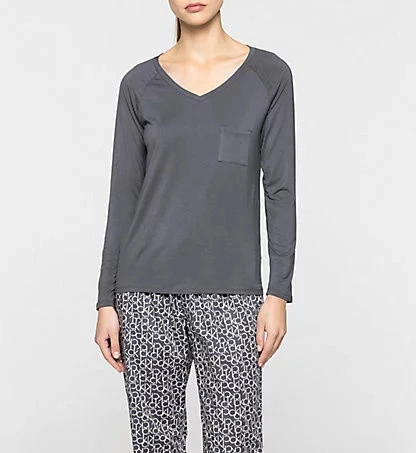Piżama damska Top L/S CURVE NECK 000QS7006E FSR make-up - Calvin Klein