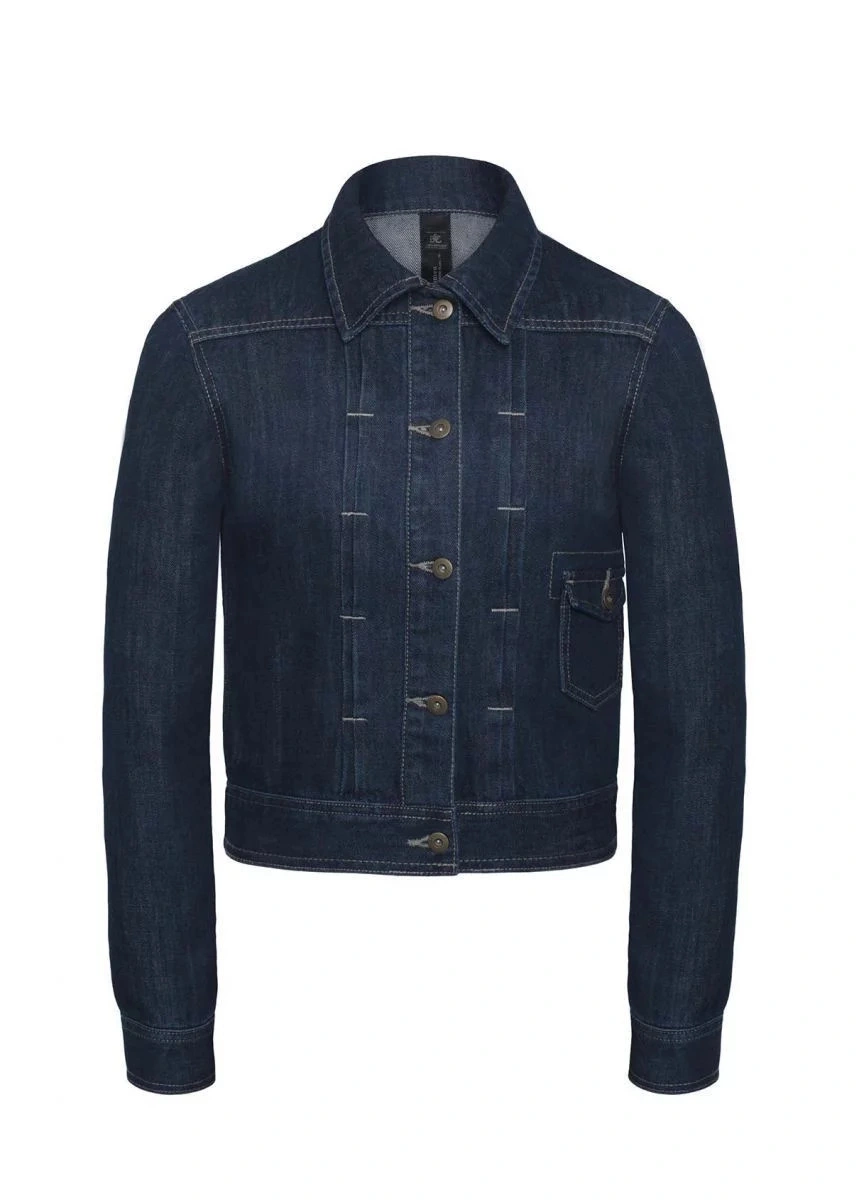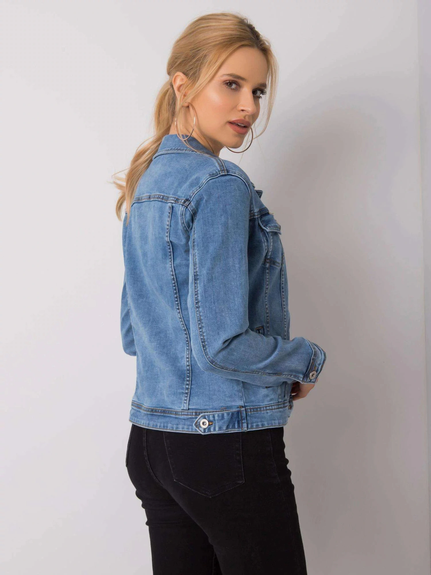 Damska kurtka dżinsowa w kolorze niebieskim.