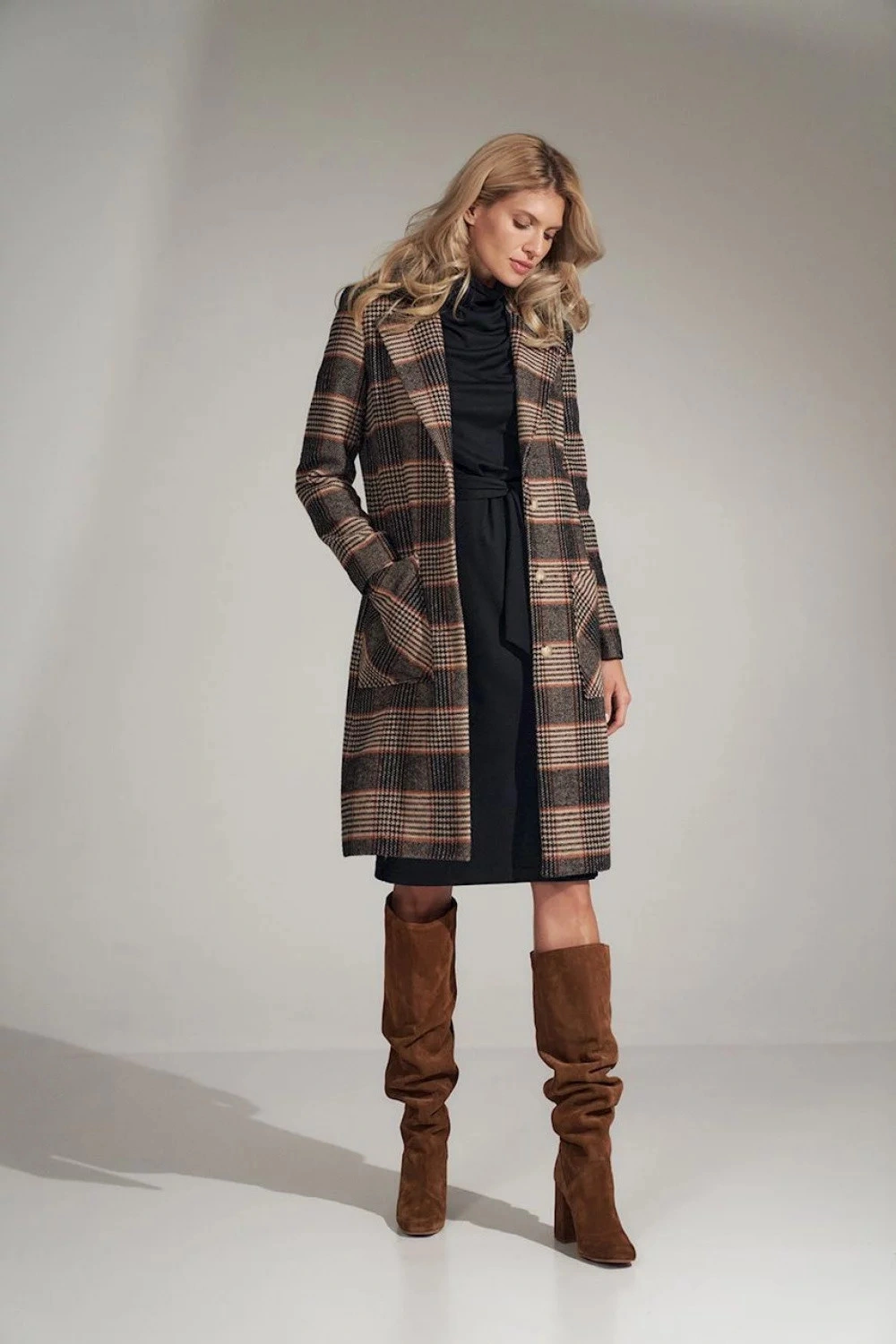Kurtka / płaszcz damski W718 - Figl L-40 brązowy mix