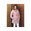 Damska kurtka zimowa ma kaptur ściągany sznurkiem z odpinanym futerkiem. Szerokość talii można regulować za pomocą dodatkowych sznurków, podobnie jak dół płaszcza.Z przodu płaszcza znajdują się dwie funkcjonalne kieszenie, rękawy wykończone są naszytą patką z otworami na kciuki. Kurtka jest również wyposażona w wewnętrzną kieszeń na piersi. Wewnętrzne futro zapewnia wspaniałe uczucie ciepła w zimie.Zdobądź ten modny element do swojej garderoby.