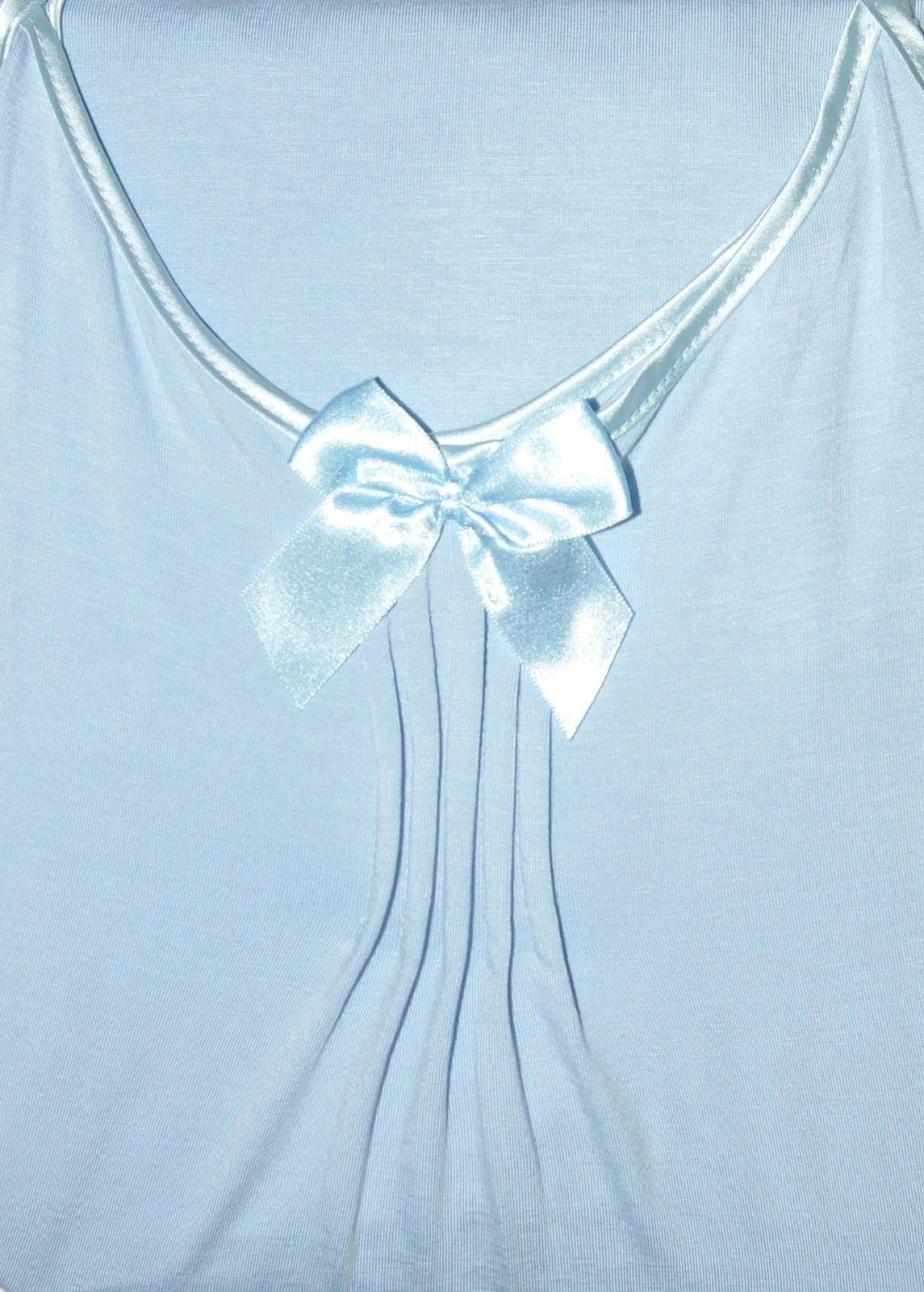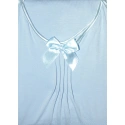 Model ma wąskie satynowe ramiączka, których długość można regulować. Dekolt modelu zdobi kokardka i delikatna falbanka.