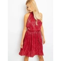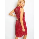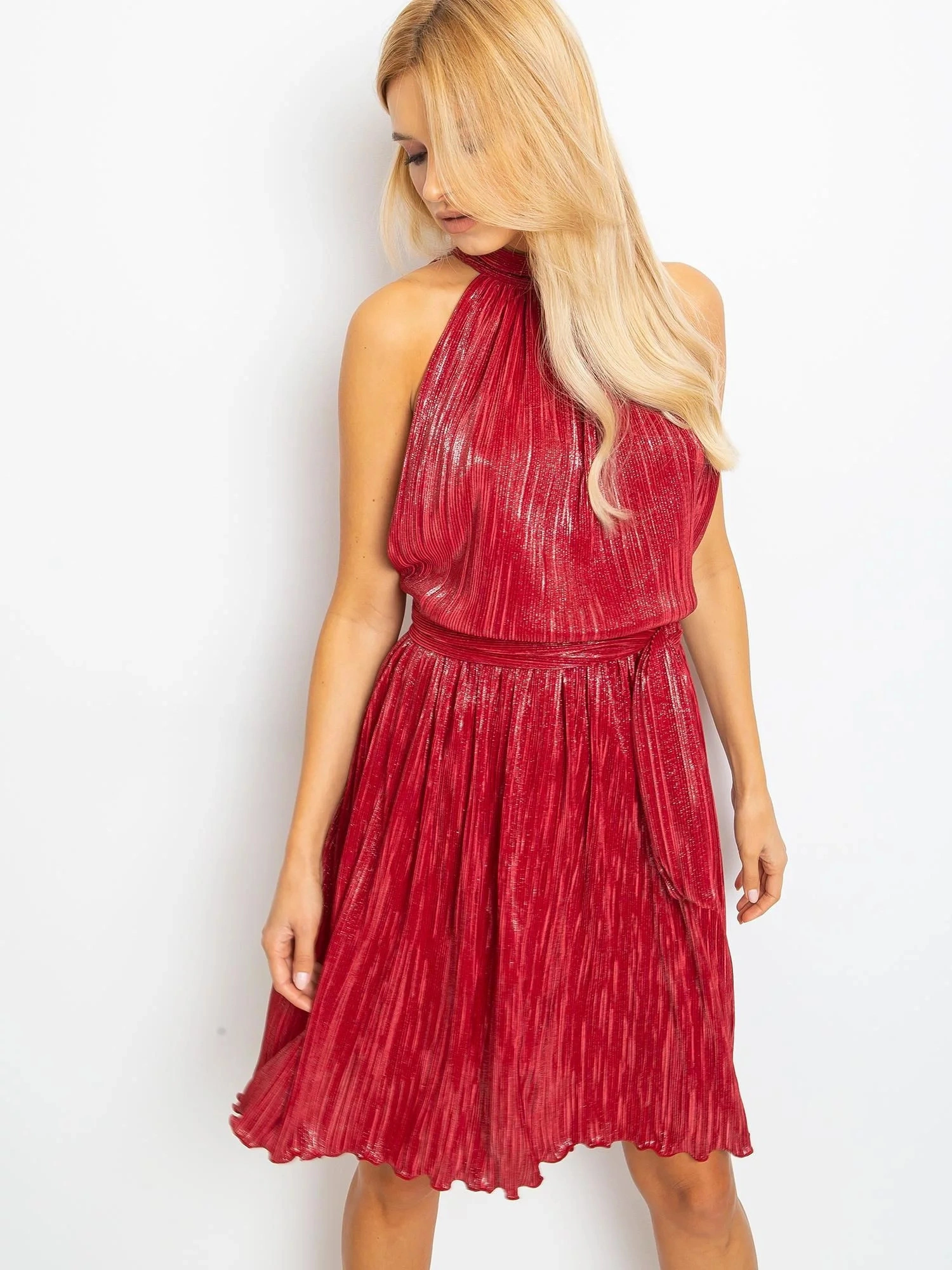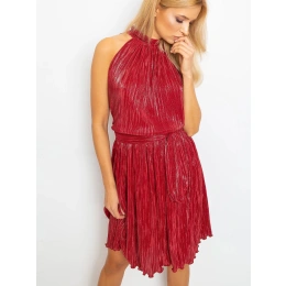 Bordowa plisowana sukienka.