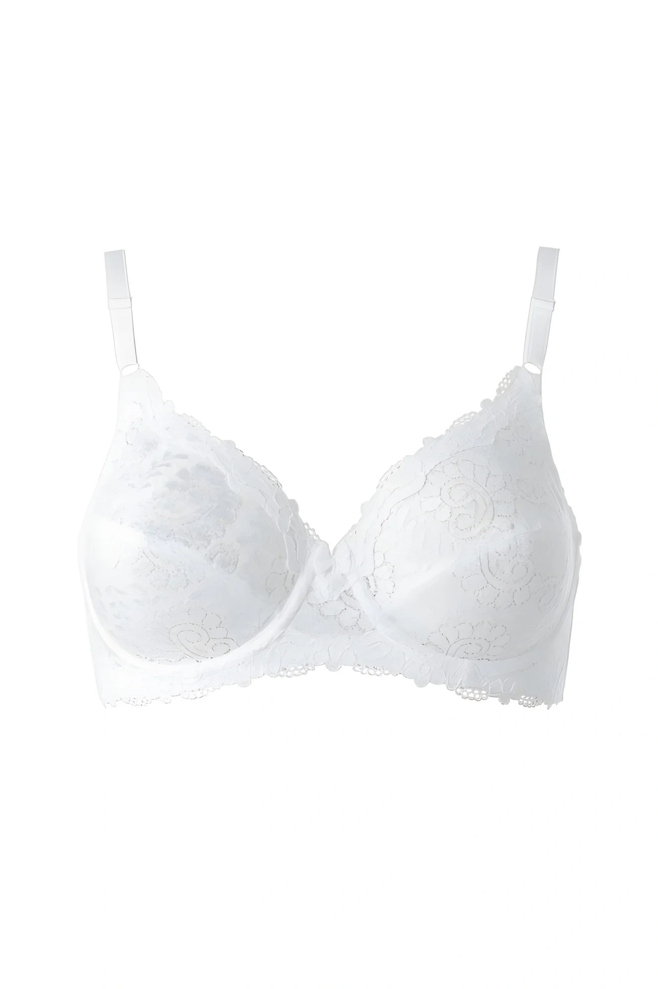Dámská nevyztužená  podprsenka Compliment W - Triumph. Formující podprsenka s kosticemi, dolní část podprsenky i košíčků dodatečně zpevněná. Košíčky vyrobené z krajky, napůl vyztužené další vrstvou tylu