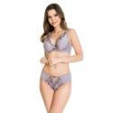 Biustonosz jest wykonany z szarego mikrowłókna i ozdobiony haftem w dekolcie.