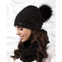 Czapka damska z pomponem 17802-3 Czarny - Art of polo