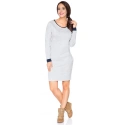 Sukienka wykonana z dzianiny dresowej, odcinana w talii. Dekolt i rękawy wykończone lamówką w kontrastowym kolorze. Dolna część sukienki jest poszerzona i pozostawiona w stanie surowym.