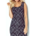 damska sukienka wizytowa w kwiatowy wzór w nowoczesnym stylu. Nowoczesna, elegancka i bardzo wygodna sukienka, którą można nosić na różnych imprezach towarzyskich. Sukienka jest bez rękawów. Długi ukryty zamek błyskawiczny z tyłu ułatwia ubieranie.nowoczesny i elegancki krój, przyjemny materiał.