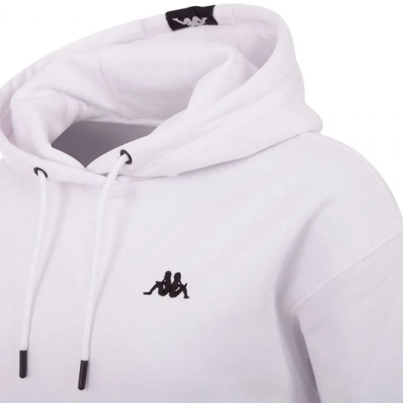 - Model w kolorze białym z ozdobną taśmą na kapturze i subtelnym logo producenta na froncie.
