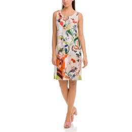 Letnia sukienka damska z kolorowym kwiatowym nadrukiem na beżowej podstawie, wykonana z wysokiej jakości materiału i zaprojektowana zgodnie z najnowszymi trendami.- Materiał 95% wiskoza, 5% elastan- Długość 0,95 m