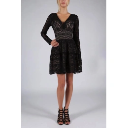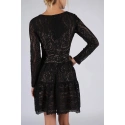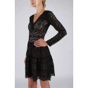 Koronkowa sukienka z długim rękawem w kolorze czarnym. Sukienka z lekko rozkloszowanym dołem. Sukienka zapinana jest na kryty zamek błyskawiczny. Idealny na wiele okazji.