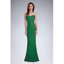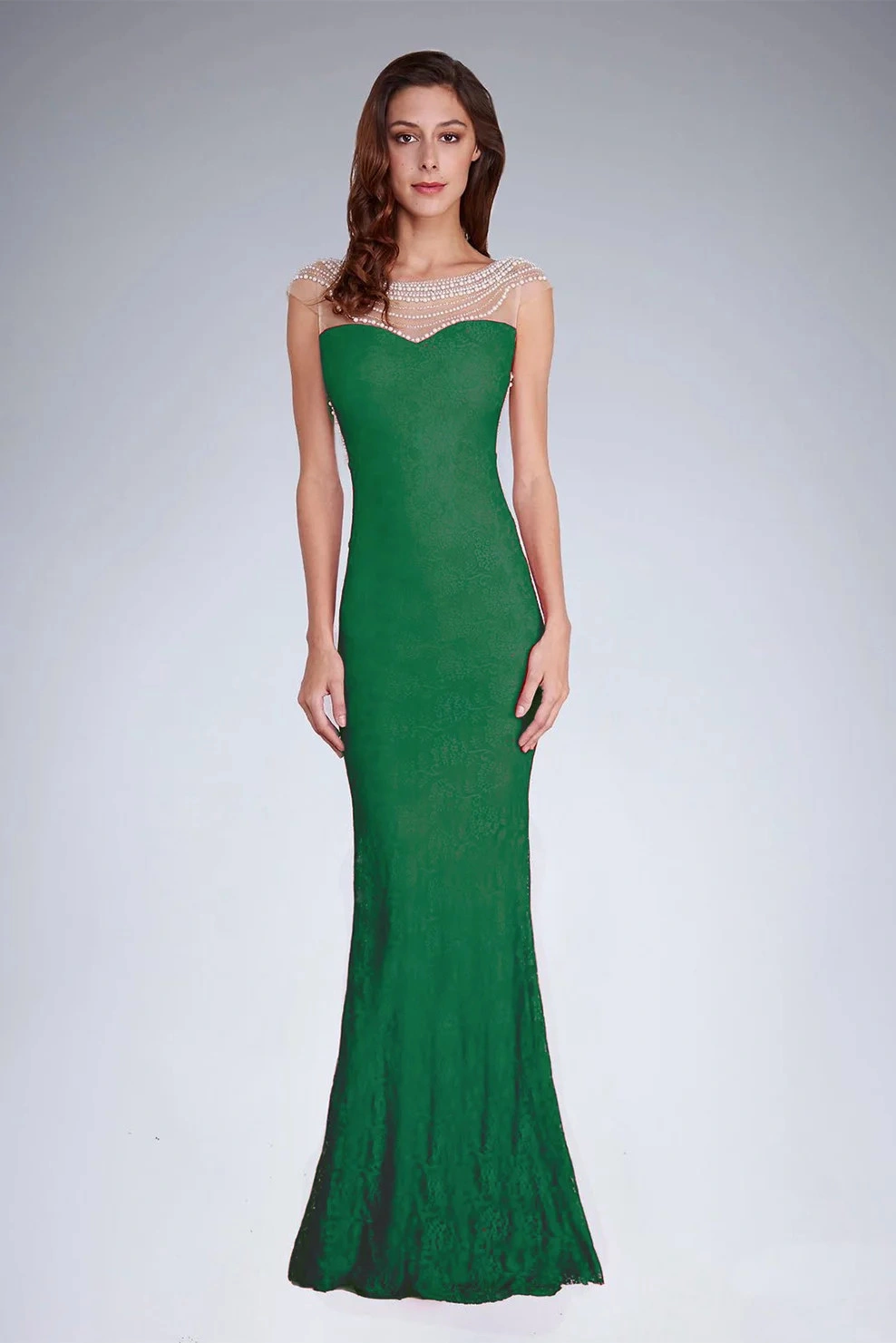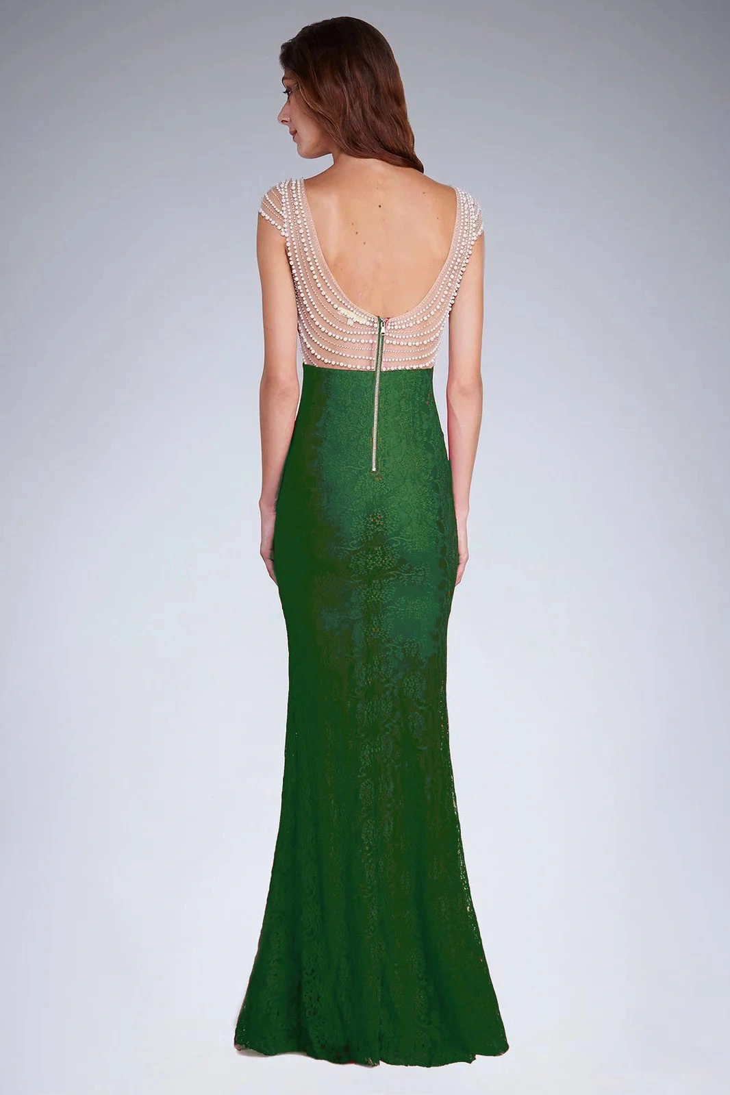 Damska sukienka wizytowa SOKY SOKA z perłami i koronką długa zielona